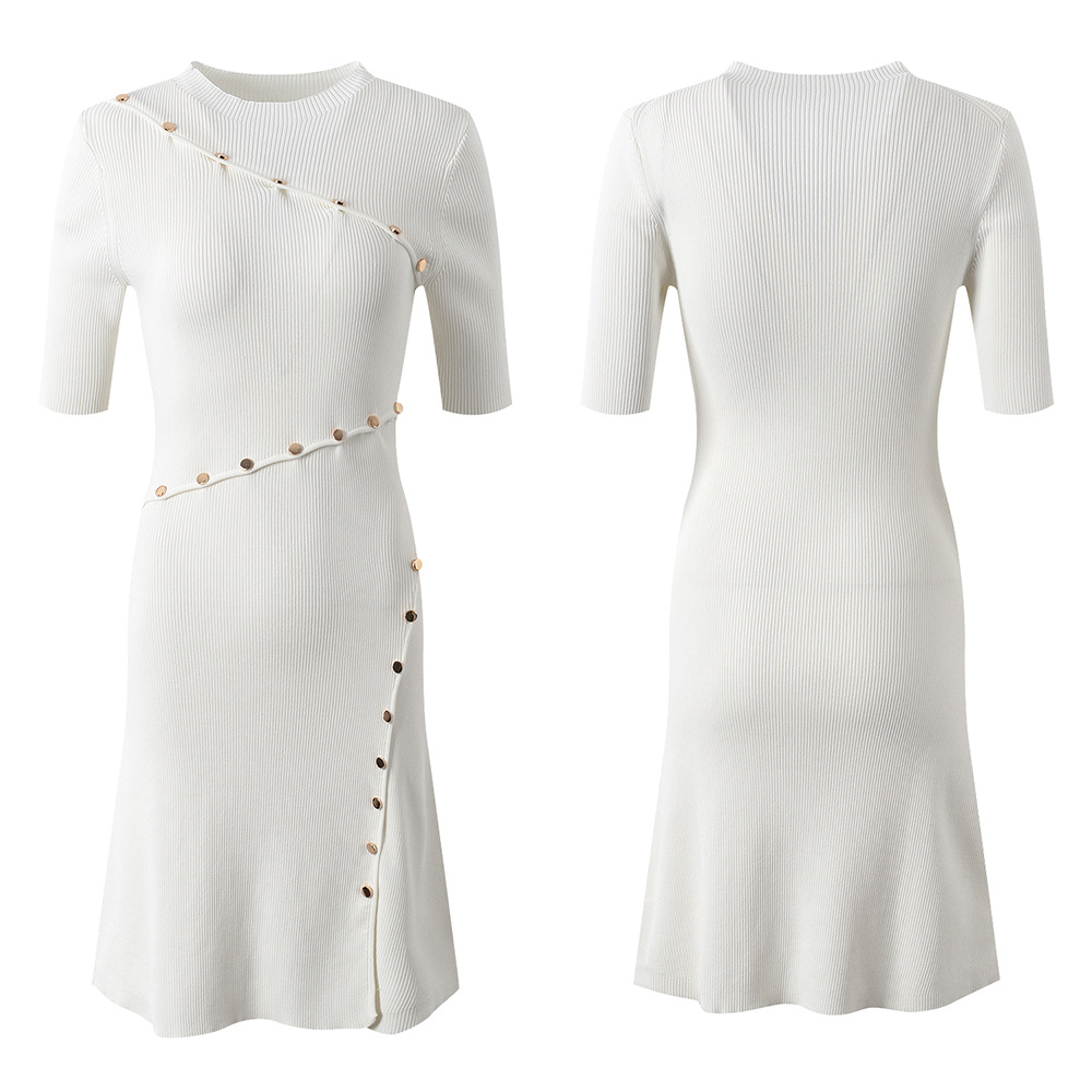 Short Sleeve Designed Solid Knits Short Mini Dress For Women