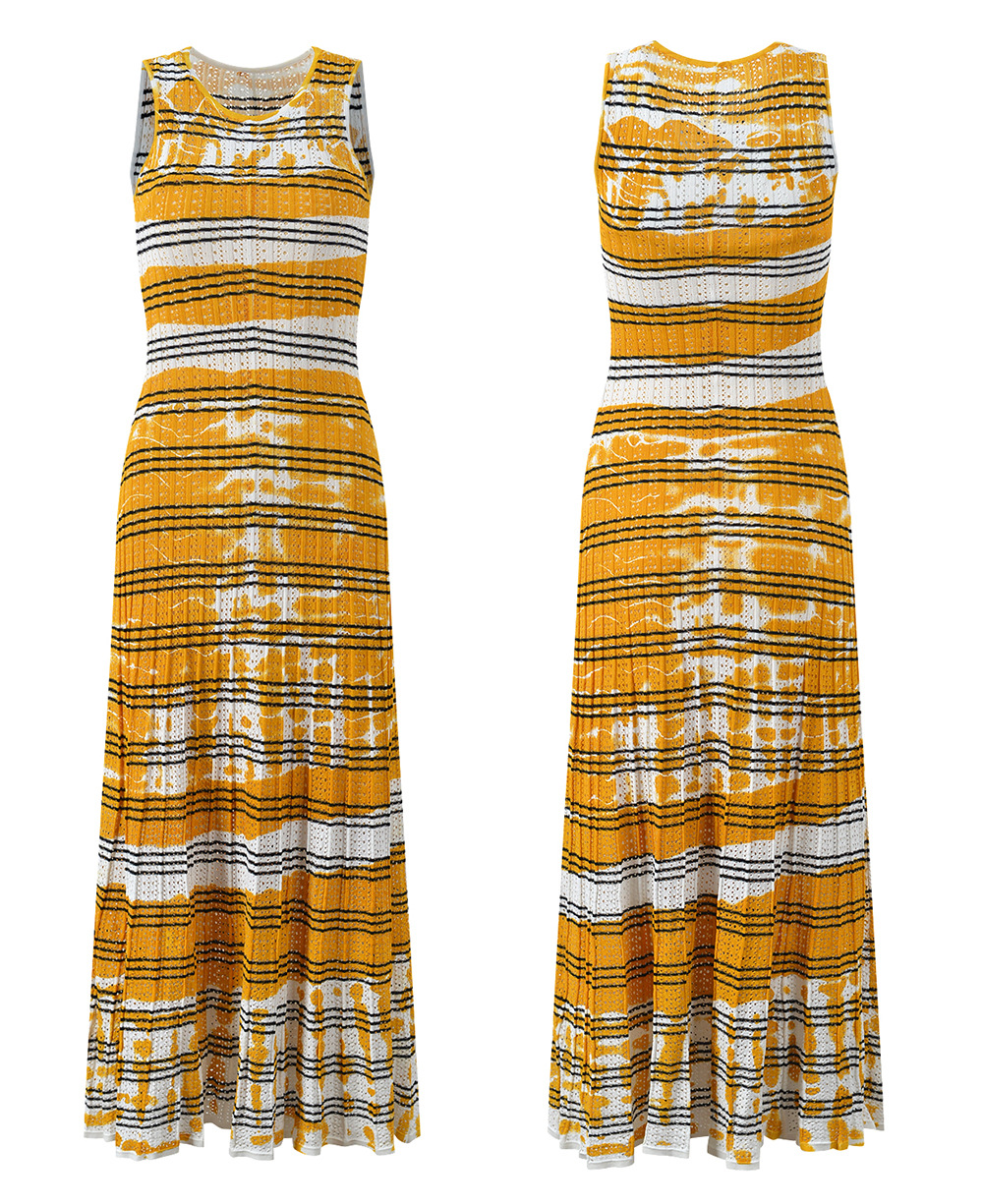 Sleeveless Holiday Casual Ladies Striped Long Dresses With Slip Lining