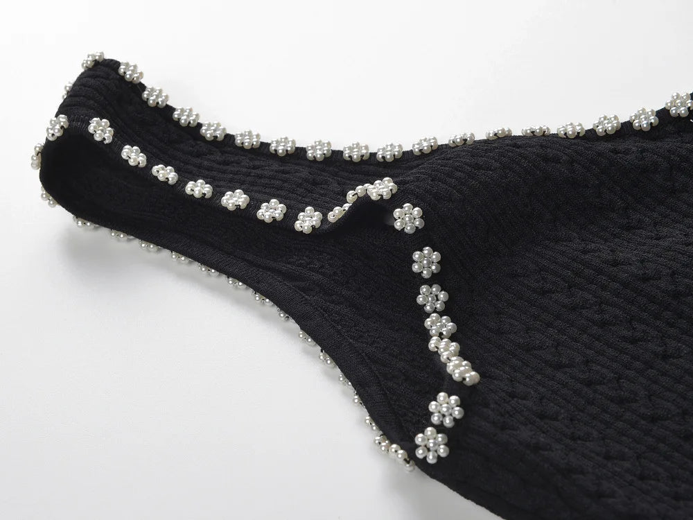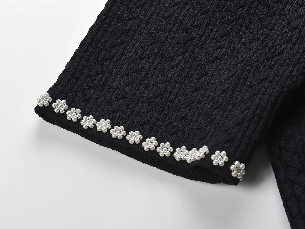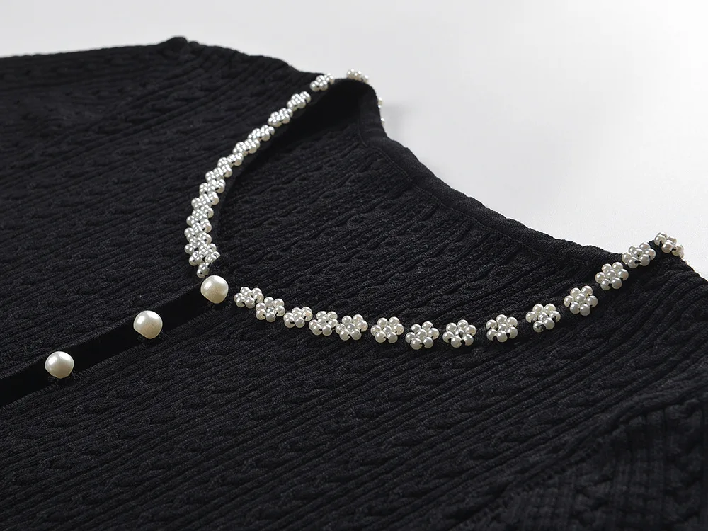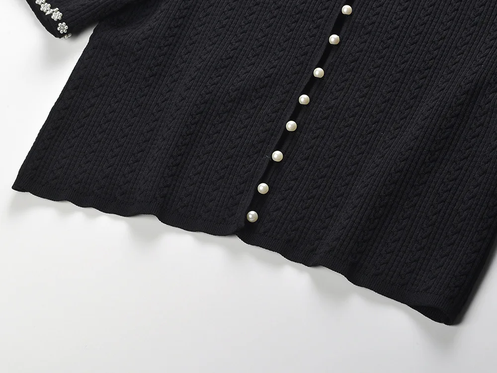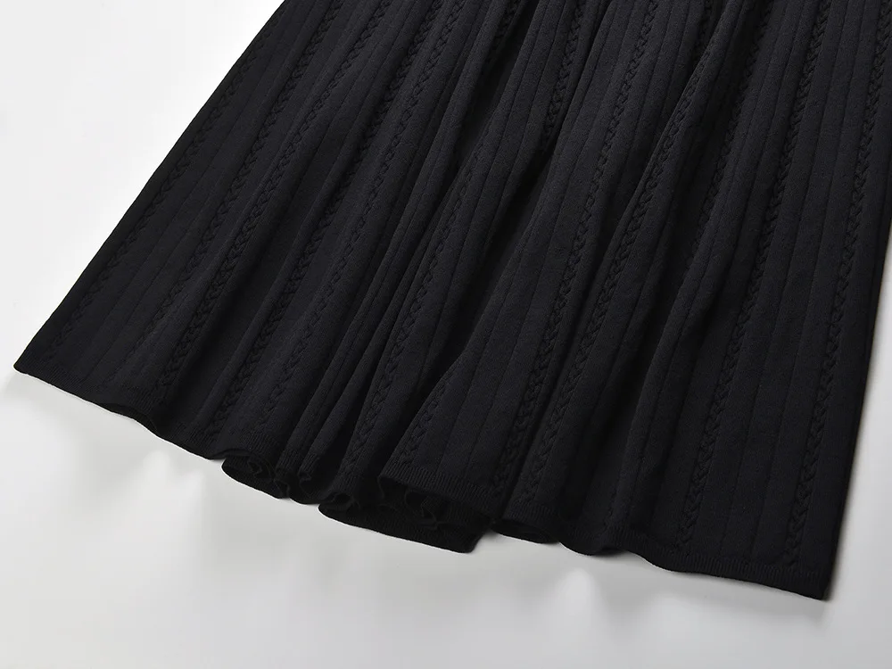 Women's black elegant two-piece suit with short-sleeved cardigan or sleeveless vest dress