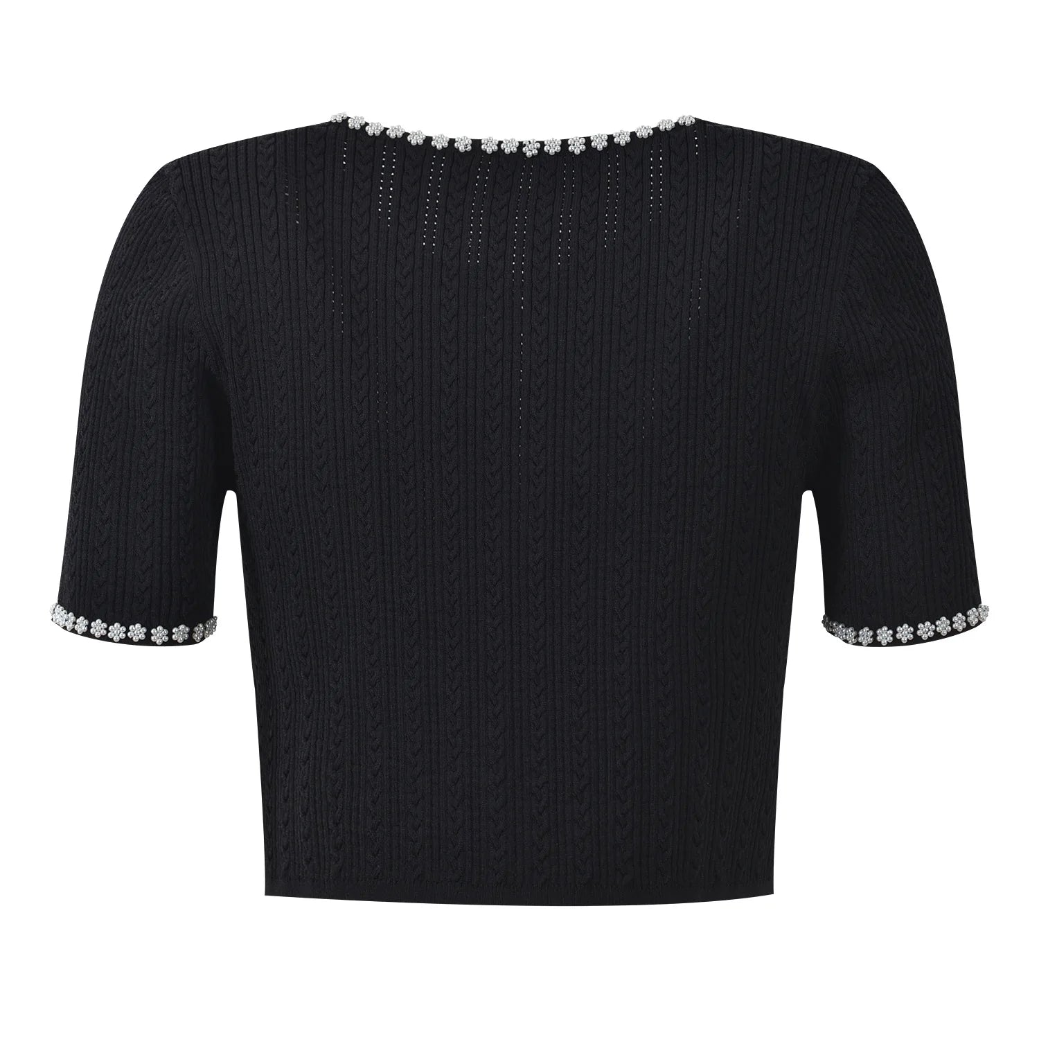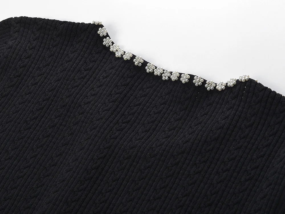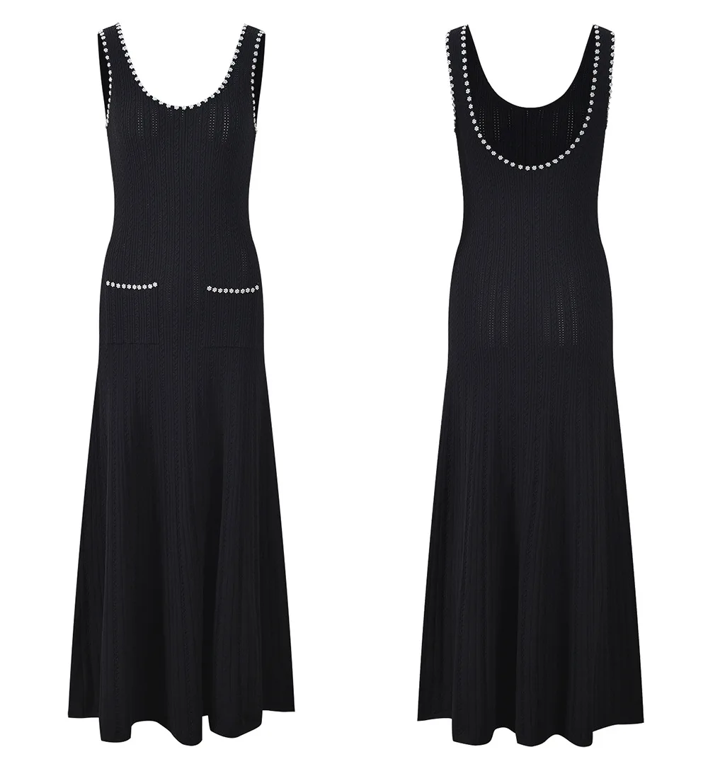Women's black elegant two-piece suit with short-sleeved cardigan or sleeveless vest dress